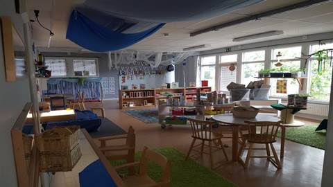 På dessa avdelningar är miljöerna och materilen anpassade efter barn i åldrarna 1–3 år. Miljöerna och materialen lockar barnen till ett utforskande och lärande som sätter deras kreativitet och fantasi i gungning tillsammans med kompisar och pedagoger. Miljöerna är planerade så att barnen själva ska kunna ta fram material och fritt röra sig mellan de olika rummen. Tillsammans med pedagogerna provar vi på lera, måla, rita, bygga, dansa och att röra oss mellan de analoga och digitala verktygen.